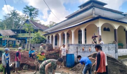 Babinsa Desa Lamanda Pimpin Karya Bakti Perbaikan Akses Jalan di Depan Masjid Al Muhajirin