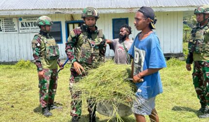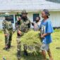 Wujudkan Lingkungan Bersih, Satgas Yonif 521/DY Bersama Warga Gelar Karya Bakti di Area Kantor Desa Apalapsili