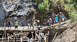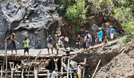 Sigap dan Peduli Binter TNI, Satgas Yonif 521/DY Tangani Perbaikan Jembatan Longsor di Distrik Eragayam