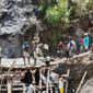 Daerah Sigap dan Peduli Binter TNI, Satgas Yonif 521/DY Tangani Perbaikan Jembatan Longsor di Distrik Eragayam