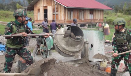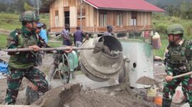 Semangat Gotong Royong, Satgas Yonif 521/DY Bersama Warga Laksanakan Pengecoran Tahap II Masjid H. Aippon Asso di Distrik Walesi