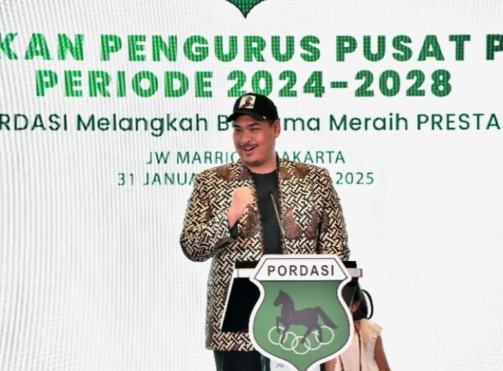 Jakarta: Menteri Pemuda dan Olahraga Republik Indonesia (Menpora RI) Dito Ariotedjo menghadiri pelantikan Pengurus Pusat Persatuan Olahraga Berkuda Seluruh Indonesia (Pordasi) periode 2024-2028 di JW Marriott, Jakarta, Sabtu (1/2).