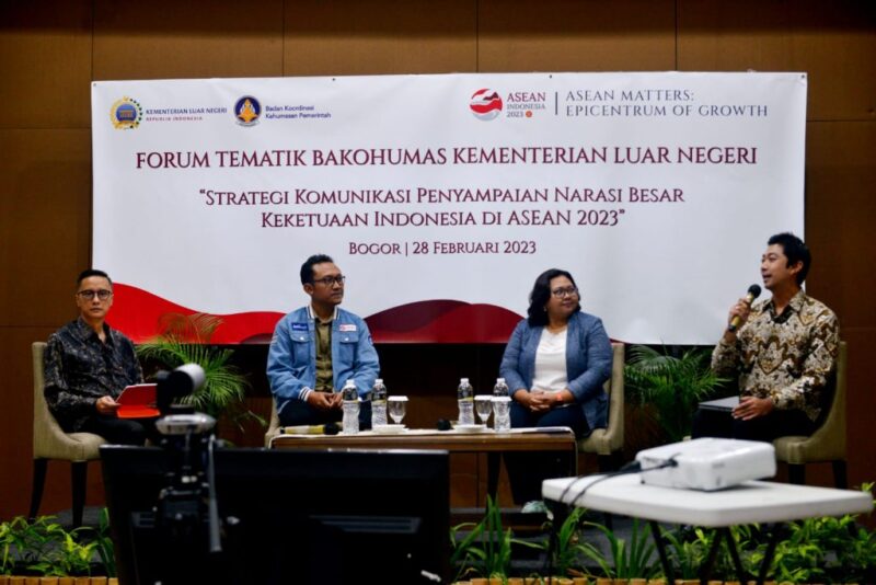Jakarta: Melalui semangat koordinasi dan kolaborasi menjalankan strategi komunikasi, Humas K/L siap menyukseskan Keketuaan Indonesia di ASEAN 2023. Hal ini tercermin dalam pelaksanaan Forum Tematik Bakohumas Kementerian Luar Negeri bertema “Strategi Komunikasi Penyampaian Narasi Besar Keketuaan Indonesia di ASEAN 2023,” yang dilaksanakan secara hybrid di Bogor, Selasa (28/2).