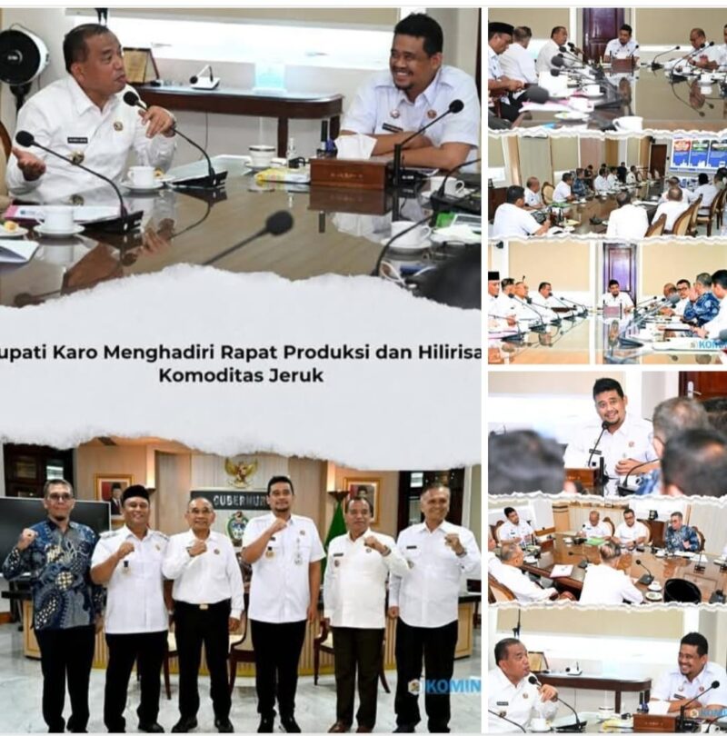 Baranews.com | Medan – Bupati Karo, Brigjen Pol (Purn.) Dr. dr. Antonius Ginting, Sp.OG., M.Kes., menghadiri Rapat Koordinasi Produksi dan Hilirisasi Komoditas Jeruk yang dipimpin Gubernur Sumatera Utara, Bobby Nasution, di Kantor Gubernur Sumut, Rabu (21/5/2025). Dalam pertemuan ini, keduanya sepakat mendorong penanganan hama lalat buah secara masif serta memperkuat identitas Jeruk Karo di pasar nasional dan internasional.
