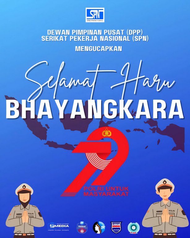 Jakarta, 1 Juli 2025 — Dalam suasana khidmat peringatan Hari Bhayangkara ke-79, Dewan Pimpinan Pusat Serikat Pekerja Nasional (DPP SPN) menyampaikan apresiasi dan dukungan penuh terhadap Kepolisian Negara Republik Indonesia (Polri). Melalui momentum ini, SPN mengajak seluruh masyarakat Indonesia untuk bersinergi dan mendukung Polri sebagai pilar penting dalam menciptakan keamanan nasional yang adil, humanis, dan berorientasi pada kepentingan rakyat.