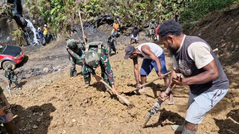Membramo Tengah,– Personel Satgas Yonif 521/DY kembali menunjukkan komitmennya dalam membantu masyarakat di wilayah penugasannya. Kali ini, melalui kegiatan karya bakti tahap kedua, prajurit dari Pos Eragayam terlibat langsung dalam perbaikan jalan rusak akibat longsor yang menghubungkan Wamena dengan Distrik Eragayam, Kabupaten Membramo Tengah, Papua Pegunungan, Rabu (10/7/2025).