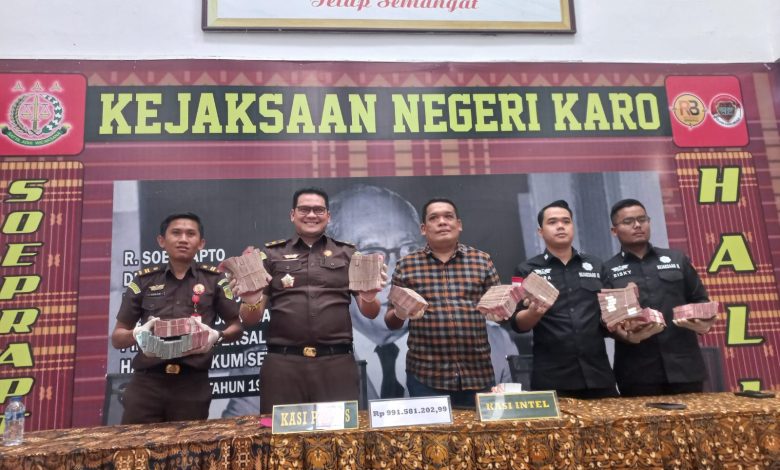 Selasa (12/8/2025), Kejari Karo menerima penyerahan uang sebesar Rp 991.581.202,99 (sembilan ratus sembilan puluh satu juta lebih) dari keluarga terdakwa Trisakti Sinuhaji. Uang tersebut merupakan pembayaran pengganti kerugian keuangan negara terkait kasus korupsi penyaluran dan distribusi pupuk bersubsidi di Kecamatan Merek, Kabupaten Karo, pada tahun 2022. Penyerahan berlangsung di Kantor Kejari Karo, Kabanjahe.