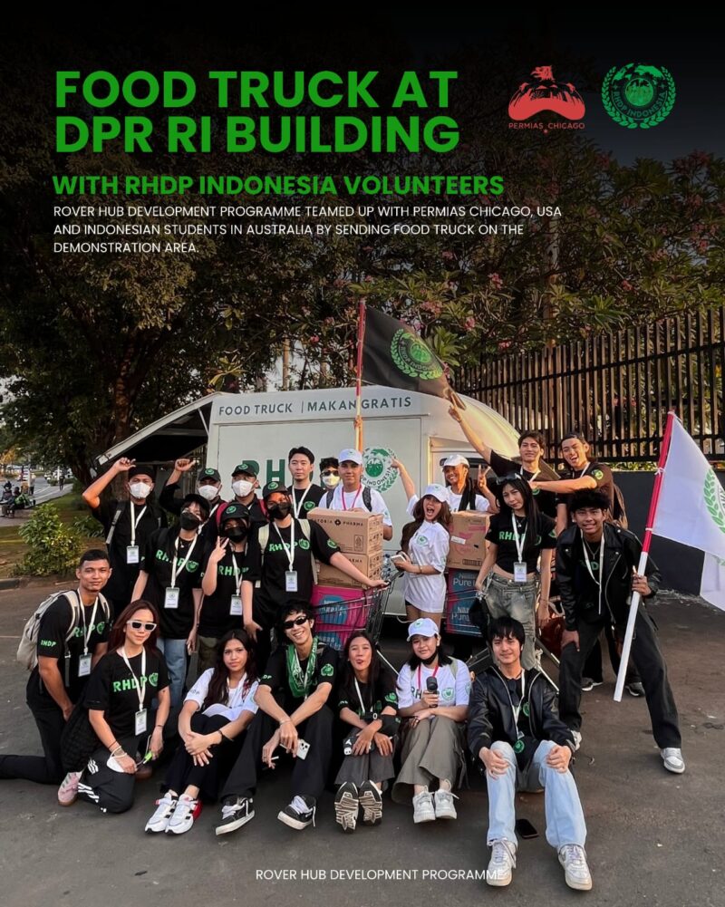 Jakarta, 6 September 2025 – Rover Hub Development Programme (RHDP) Indonesia kembali hadir mendukung rakyat dalam aksi demonstrasi di Gedung DPR RI dengan menurunkan food truck, menyalurkan bantuan medis, air isotonik, serta dukungan relawan.
