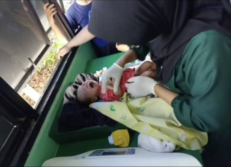 “Untuk sementara bayi ditangani oleh tenaga medis sambil menunggu proses lebih lanjut dari pihak berwenang,” kata salah satu petugas puskesmas.