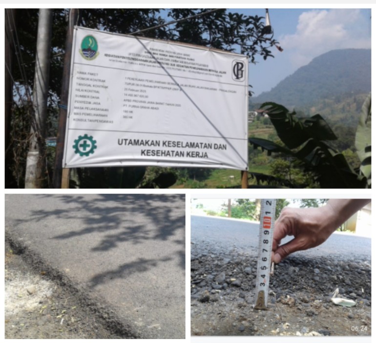 BARA NEWS .COM <> BANDUNG – Proyek pemeliharaan berkala jalan pada Ruas Jalan Banjaran–Pangalengan kembali menuai sorotan publik. Pekerjaan dengan nilai kontrak Rp14,49 miliar yang dikerjakan PT Purna Graha Abadi berdasarkan Paket Kontrak No. 75/PUPR.08.01/BM.6.4.2.2/PPK/PJJ/UPT-III/2025 tertanggal 25 Februari 2025, diduga jauh dari standar teknis yang dipersyaratkan.