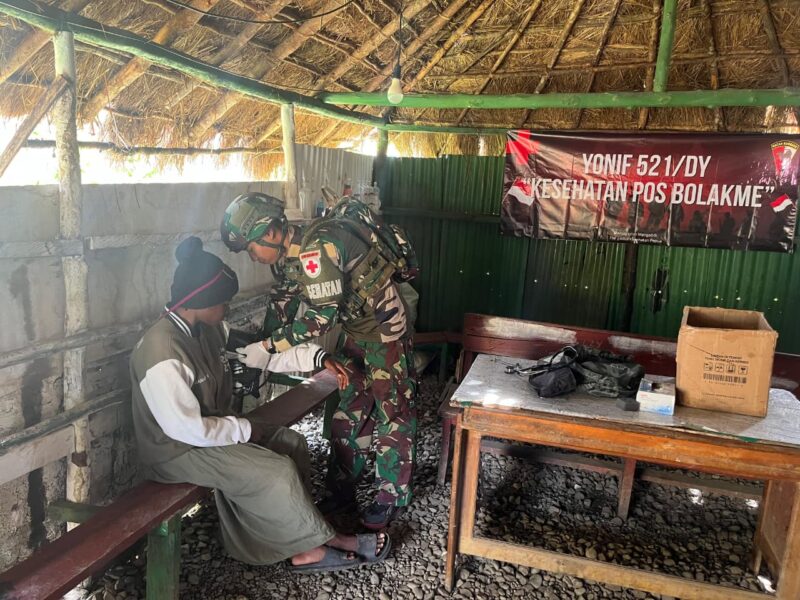 Jayawijaya ~ Hati yang tergerak oleh panggilan kemanusiaan, Pos Bolakme Satgas Yonif 521/DY menunjukkan kepeduliannya dengan membuka layanan kesehatan gratis di Pos Bolakme bagi masyarakat di Distrik Bolakme, Kabupaten Jayawijaya, Papua Pegunungan, (17/10/2025).