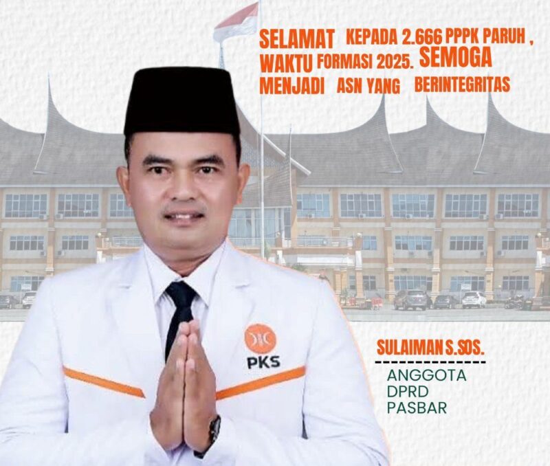 Pelantikan ribuan Pegawai Pemerintah dengan Perjanjian Kerja (PPPK) paruh waktu di lingkungan Pemerintah Kabupaten Pasaman Barat mendapat perhatian khusus dari kalangan legislatif. Anggota DPRD Pasaman Barat, Sulaiman S.Sos, menyampaikan apresiasi dan ucapan selamat kepada 2.658 pegawai yang resmi dilantik pada Jumat (23/1/2026).