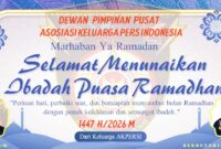 Jakarta, – Menyambut datangnya bulan suci Ramadhan 1447 Hijriah, Ketua Umum dan Sekretaris Jenderal Asosiasi Keluarga Pers Indonesia (AKPERSI) menyampaikan ucapan selamat menunaikan ibadah…
